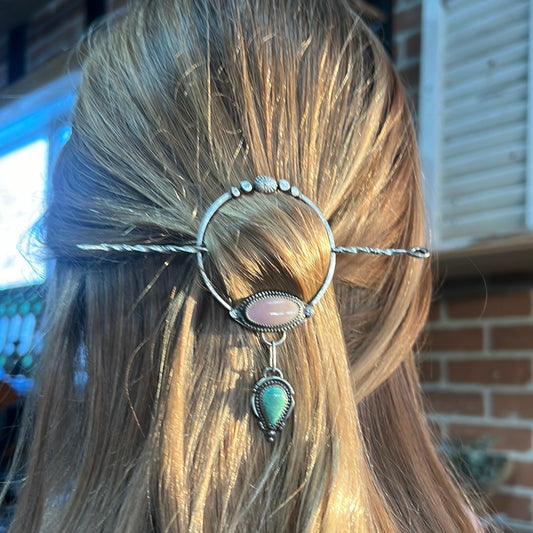 Sold outPink Conch + Turquoise Hair Pin