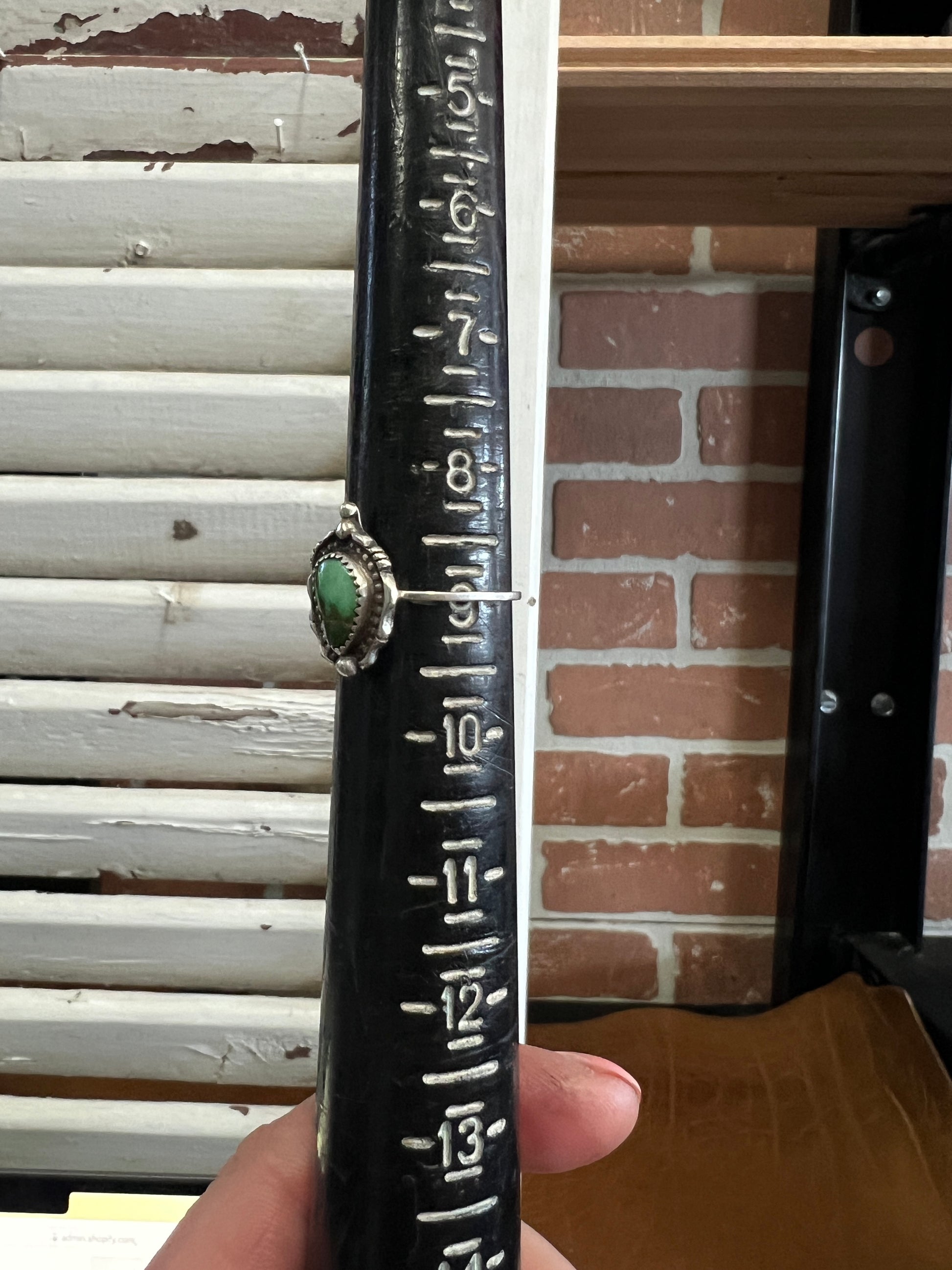 Size 9 petit band with the face being 5/8" long x 1/2" wide.