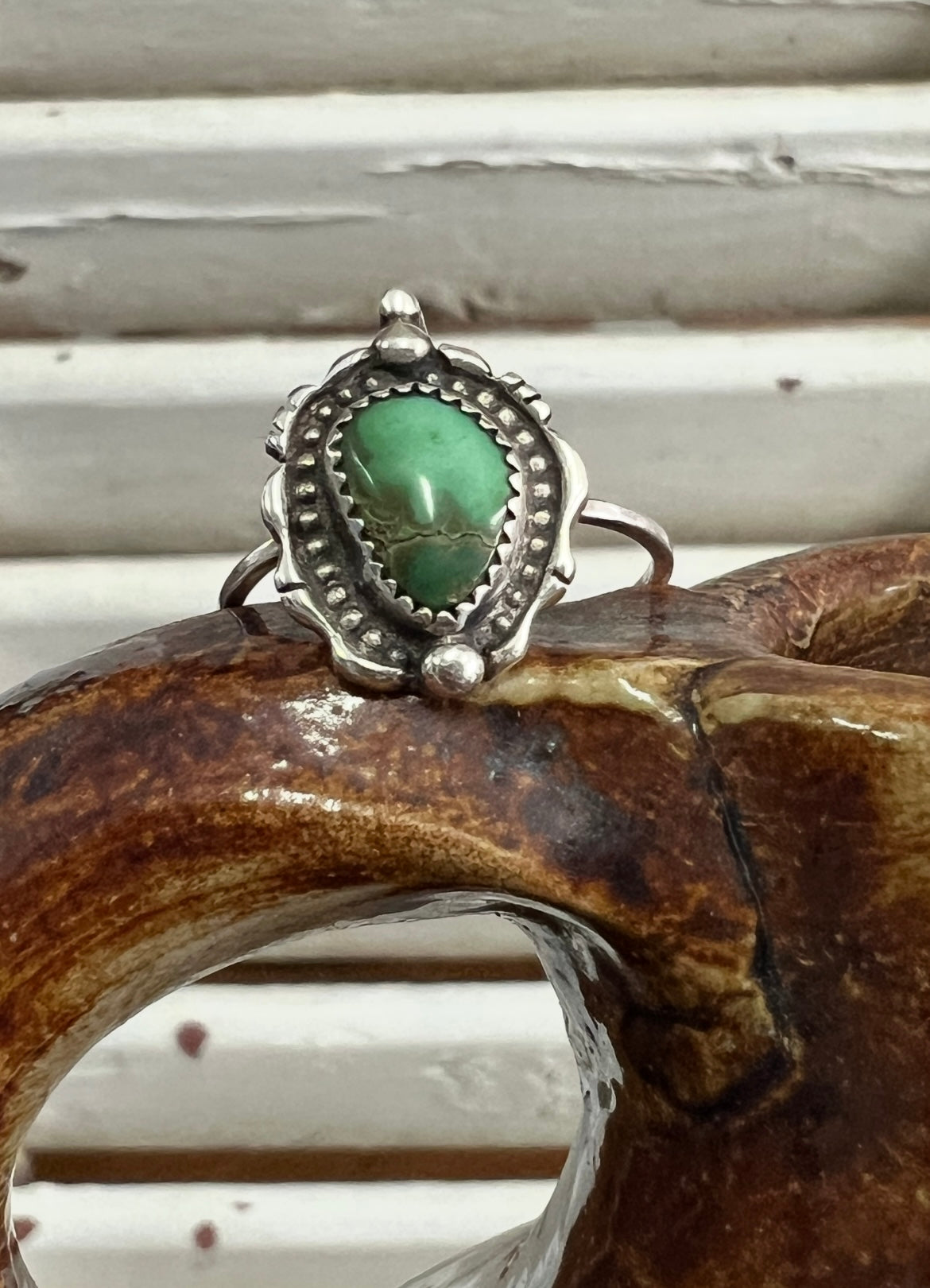 This ring features a sought after and hard to come by piece of polychrome iron maiden turquoise set in a beautiful saw-cut framed setting with silver accents. Handcrafted with solid sterling + fine silver.